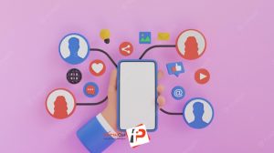 عکس استوک گوشی هوشمند و لوگو سه بعدی فیسبوک